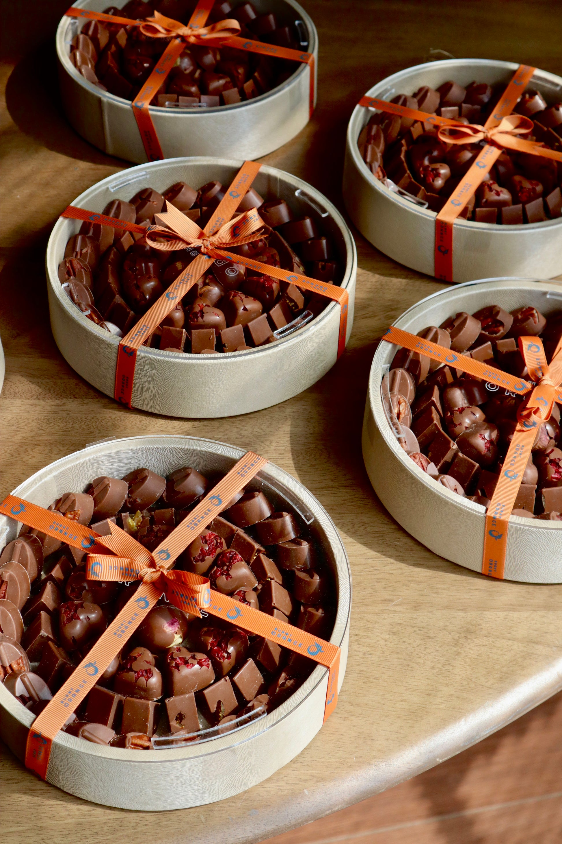 545g of the Pralines Nuts & Dried Fruits Collection in a mini leather circle tray.